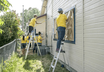 As restitution for spray painting the school's wall, Sam was ordered by the juvenile court to work with a volunteer group repainting a needy family's house.