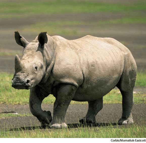 1. Any of several large, thick-skinned, herbivorous mammals of the family Rhinocerotidae, of Africa and Asia, having one or two upright horns on the snout.犀牛:任一种大型厚皮食草的非洲或亚洲的犀牛科哺乳动物,口鼻部上长有一或两支直立的角