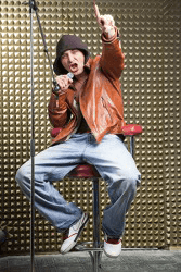 The up and coming rapper frequently shocks his audience with his ribald song lyrics.