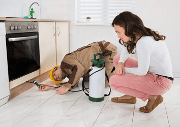 The exterminator sprayed under the kitchen cabinets to rid the house of bugs.