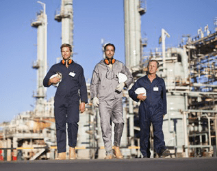 The riggers work together at the offshore oil refinery for several months at a time.