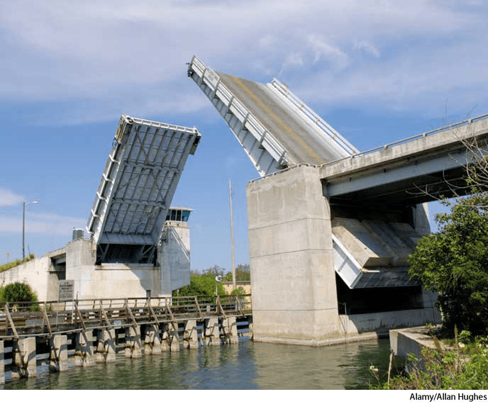 bas·cule AHD[băsʹkyo͞ol] D.J.[ˈbæskjuːl]K.K.[ˈbæskjul]n.(名词) bascule- A device or structure, such as a drawbridge, counterbalanced so that when one end is lowered the other is raised.平衡装置:一种装置或结构,比如吊桥,当一端末端降下时,另一边就升起,使保持平衡