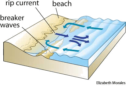rip currentn.(名词) rip currentA rip current is formed when water coming ashore is channeled back to sea through a narrow passage, such as a break in a sandbar, causing an increase in the strength of the current.- A strong, narrow surface current that flows rapidly away from the shore, returning the water carried landward by waves. Also called rip tide ,tiderip 离岸流,退潮流:一股强劲有力而狭窄的表面流,它急速地离岸流动,把被波浪携带返回到陆地方向的水体中 也作 rip tide,tiderip