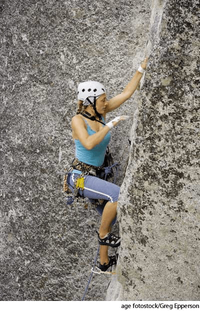 攀岩:攀登陡峭岩面的运动或活动,尤指借助专业技巧和装备