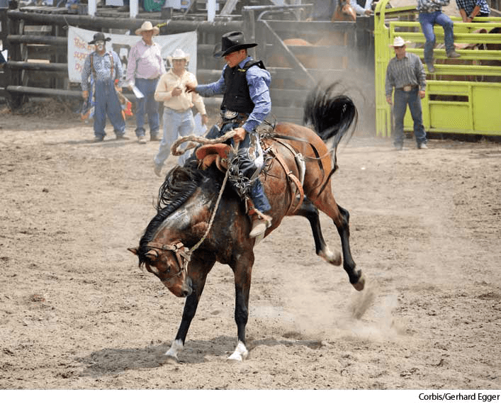 1. A public competition or exhibition in which skills such as riding broncos or roping calves are displayed.牧马技术表演,放牧人竞技会:一种展示骑马或套牛等技巧的公开竞持或表演