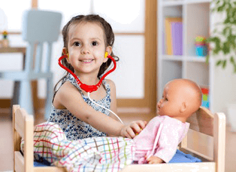 Sabrina's role playing as a doctor might be an indicator that she will choose a career in the medical field.