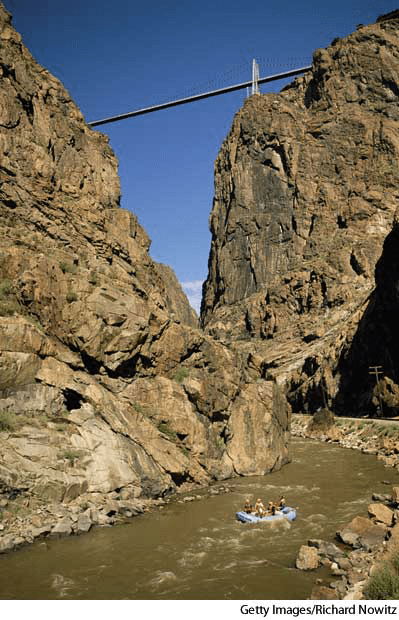 Roy·al Gorge AHD[roiʹəl] D.J.[ˈrɔɪəl]K.K.[ˈrɔɪəl]NONE(无词性) Royal Gorge- A long, narrow canyon formed by the Arkansas River in south-central Colorado. Its near-vertical walls are more than 305 m (1,000 ft) high. The gorge was discovered by Zebulon Pike's expedition in 1806.罗亚尔峡谷:美国科罗拉多中南部阿肯色河形成的狭长峡谷。几乎垂直岸壁有305米(合1,000英尺)多高。这个峡谷是1806年泽布伦·派克在探险时发现的