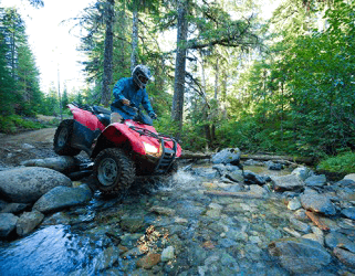 An ATV is the type of vehicle suitable for traversing rugged, off-road trails.