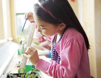 Jennifer uses a ruler to measure the plant she is growing for an experiment in her science class.