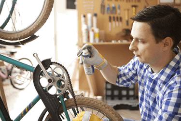 Greg sprayed lubricant on the bike chain because it developed rust which prevented it from moving smoothly.