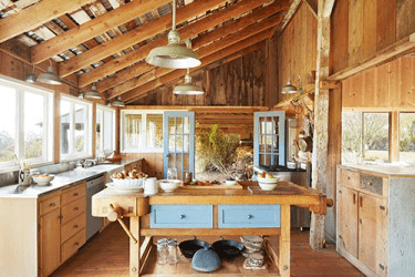 The rustic decor of the farmhouse kitchen suited its rural surroundings.