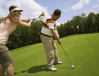 Leanne attempted to sabotage her husband while he was putting the ball.
