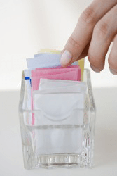 She puts sugar in her coffee but she uses saccharine for her iced tea.