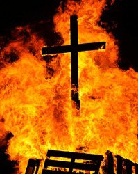 Burning a cross is considered a sacrilegious act in the Christian faith.