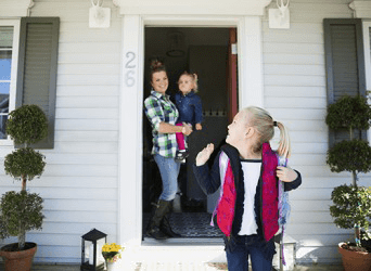 Mila said goodbye to her mother and little sister when she left for school.