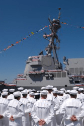 A group of sailors on the deck of their ship.