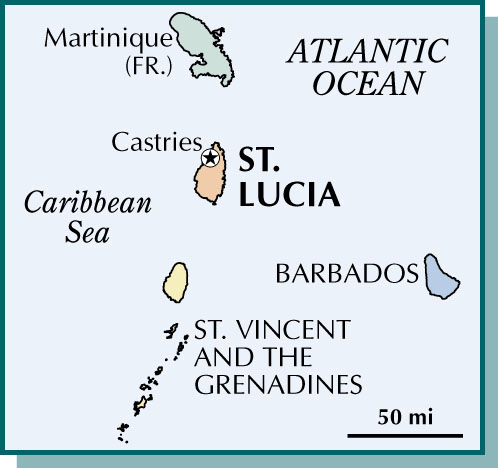 1. An island country of the West Indies in the Windward Islands south of Martinique. The island was probably discovered by Columbus in 1502 and was first settled by the English in 1605. Its possession was contested by the French until the end of the Napoleonic Wars (1814), when it passed definitively to Great Britain. The country achieved independence in 1979. Castries is the capital. Population, 134,006.圣卢西亚岛:西印度群岛中的一个岛国,位于向风群岛马提尼克岛以南。此岛可能是1502年由哥伦布发现,1605年被英国首先占领。直至拿破仑战争的结束(1814年)法国曾一度试图占有此岛,随后英国完全占有此岛。1979年圣卢西亚获得独立,首都卡斯特里。人口134,006