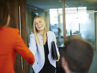 Kathie made sure to aknowledge the interviewers with a formal salutation when she entered the room.