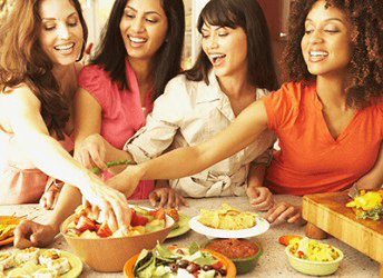 A good way to feel satiety and eat healthy while at a party is to fill your plate with vegetables first.