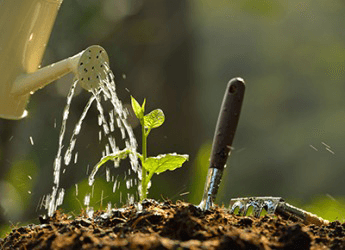 The saturated garden soil will help the seedling grow into a healthy plant.