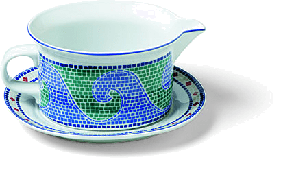 1. A low, boat-shaped pitcher typically having a wide lip at one end and a handle at the other and used for serving sauces and gravies.船形调味碟:一种用于盛调味汁和肉汁的低矮船形器皿,典型特征为一头有宽嘴心,另一头有把手
