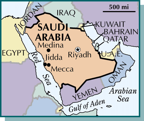Sa·u·di A·ra·bi·a AHD[souʹdē ə-rāʹbē-ə, sôʹdē, sä-o͞o′dē] D.J.[ˈsaʊdiː əˈreɪbiːə, ˈsɔːdiː, sɑːˈuːdiː]K.K.[ˈsaʊdi əˈrebiə, ˈsɔdi, sɑˈudi]NONE(无词性) - A country occupying most of the Arabian Peninsula. Political agitation in the region began in the late 18th century and resulted in a dual kingdom formed in 1926 and a unified independent kingdom proclaimed in 1932. Oil was discovered in 1936 and production begun in 1938. Riyadh is the capital and the largest city. Population, 9,320,000.沙特阿拉伯:一个占据绝大部分阿拉伯半岛的国家,18世纪晚期在这一地区出现了政治骚乱,结果在1926年分裂为二个王国,1932年合并统一的独立王国宣布成立。1936发现石油,并于1938年开采。首都利雅得是最大城市。人口9,320,000