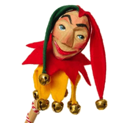 Baubles on a toy jester's hat.