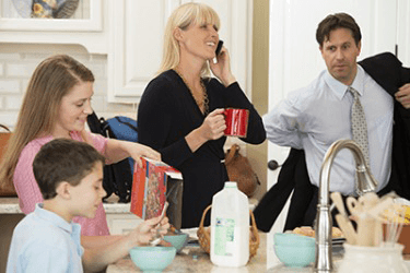 The Pattersons scarcely have enough time to connect in the morning but they always make sure to give each other a hug before they head out the door.