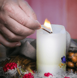 He scathed his fingertip with the flame while lighting the candle.