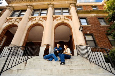 Students sitting outside their school.