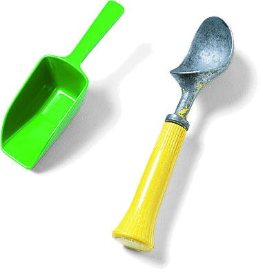 1. A thick-handled cuplike utensil for dispensing balls of ice cream or other semisoft food, often having a sweeping band in the cup that is levered by the thumb to free the contents.勺:粗柄杯状用具,用于盛冰淇淋球或其它半软性食物,通常在杯中有一圈,经手指的杠杆作用后释放其中的容纳物