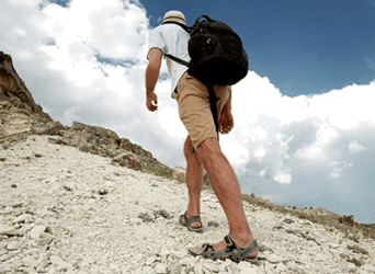 The hiker scrabbled up the trail as he struggled to get his footing on the loose gravel.
