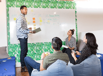 The young owners of the start up company were running their business by the seat-of-their-pants because they lacked previous experience.