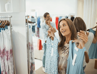 Melanie kept second guessing if she should buy the solid or print top so she asked her husband for his opinion.