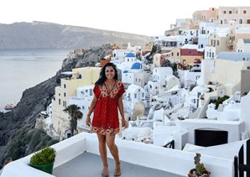 Juliana seldom goes on vacation because she prefers to save up for big trips like the one she took to Santorini Island, Greece.