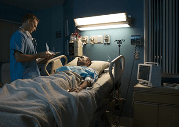 The doctor evaluated his semiconscious patient shortly after the surgery to make sure he was responding well.