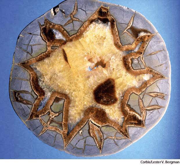 sep·tar·i·um AHD[sĕp-târʹē-əm] D.J.[sepˈteəriːəm]K.K.[sɛpˈtɛriəm]n.(名词)【复数】 sep.tar.i.a[-ē-ə]  septarium- An irregular polygonal system of calcite-filled cracks occurring in certain rock concretions.龟背石,凝岩球:发生在特定的岩石结核体中,由方解石填充的不规则多边形裂缝形成的系统