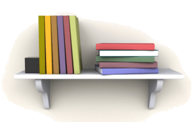 Books on an empty shelf.