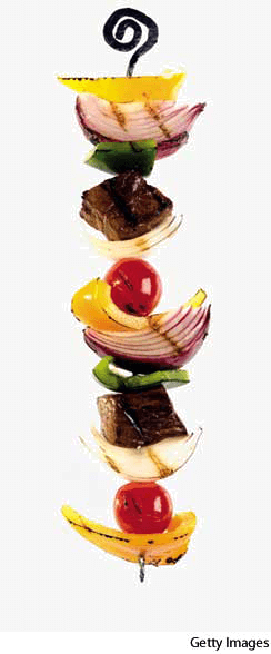 shish kebab 也作 shish ke·bob 或 shish ka·bob AHD[shĭshʹ kə-bŏb'] D.J.[ˈʃɪʃ kəˌbɒb]K.K.[ˈʃɪʃ kəˌbɑb]n.(名词) shish kebab- A dish consisting of pieces of seasoned meat and sometimes vegetables roasted on skewers and served with condiments.烤肉串:一种食品,由经过调味处理的肉在串肉竿上烤制而成,有时也有蔬菜,涂上辛辣的调味品后食用
