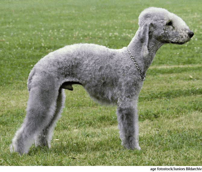 贝德林顿猎狗:英格兰家养狗,有灰褐色或褐色厚毛