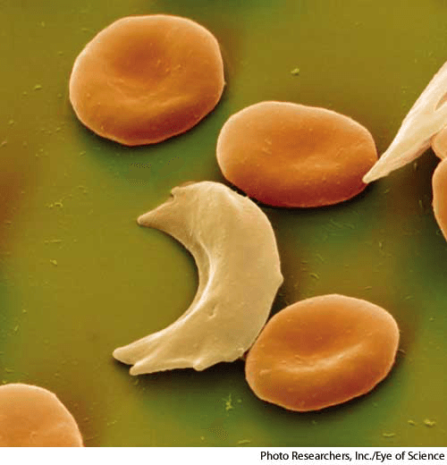 sickle celln.(名词) sickle cellsurrounded by normal red blood cells- An abnormal, crescent-shaped red blood cell that results from a single change in the amino acid sequence of the cell's hemoglobin, which causes the cell to contort, especially under low-oxygen conditions.镰状细胞:一种异常的月牙状红血细胞,由于细胞血红蛋白的氨基酸序列的一个变化导致细胞弯曲造成的,尤其在低氧的环境中