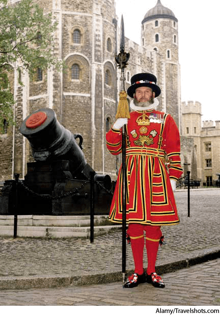 注释- Tourists in England who have seen the warders of the Tower of London and the Yeomen of the Guard know that these men dressed in 15th-century uniforms are calledbeefeaters. Not all tourists are aware, however, that the original use of the term (recorded in 1610) was pejorative,referring to a well-fed servant.In a work published before 1628 the word was also said to have been used contemptuously by the French for an Englishman or an English soldier.The wordbeefeater has thus risen in the world, for the well-fed, well-muscled beefeaters of today (this use was first recorded in 1671) are considered by many to be a national treasure. 到英国旅游见到过伦敦塔的皇家侍卫都知道这些身着15世纪制服的人叫伦敦塔卫士。 但并不是所有的游客都注意到了,这个词最早用作轻蔑语(载于1610年),是指吃得很好的仆人。在1628年前发表的一篇文章中,这个词也被法国人用来蔑称英国人或英国士兵。由于今天营养充足,肌肉发达的皇家侍卫(该意最早使用刊载于1671年)被许多人认为是英国的国宝,伦敦塔卫士 一词于是开始广为流传