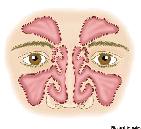 - Any of various air-filled cavities in the bones of the skull, especially one communicating with the nostrils.鼻窦:骰骨中充满空气的穴,尤指连通鼻腔的空穴