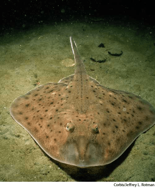skate 2 AHD[skāt] D.J.[skeɪt]K.K.[sket]n.(名词) skate2clearnose skateRaja eglanteria- Any of various rays of the genusRaja, having a flattened body and greatly expanded pectoral fins that extend around the head. 鳐鱼:一种鳐 属鱼,具有扁平的身体和扩展于头部周围的宽大胸鳍