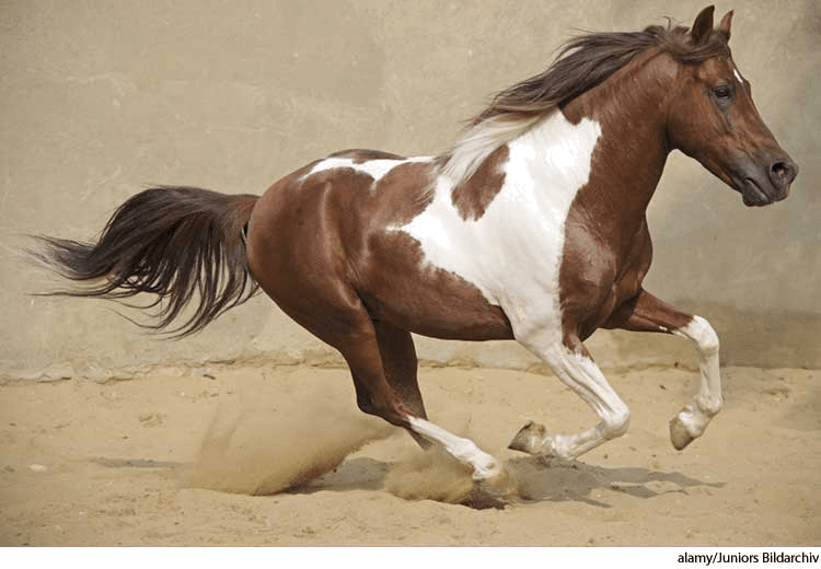 n.(名词)- A skewbald animal, especially a horse.花斑色的马:白色和其他色相杂的动物,尤其指马