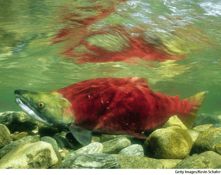 sock·eye salmon AHD[sŏkʹī'] D.J.[ˈsɒkˌaɪ]K.K.[ˈsɑkˌaɪ]n.(名词) sockeye salmonmale sockeye salmonOncorhynchus nerka- A salmon(Oncorhynchus nerka) of northern Pacific coastal waters that is a commercially valuable food fish. Also called blueback salmon ,red salmon 红大马哈鱼,袜眼鲑:北太平洋浅海地区的一种大马哈鱼(红大麻哈鱼 大麻哈鱼属) ,是一种商业价值很高的食用鱼 也作 blueback salmon,red salmon