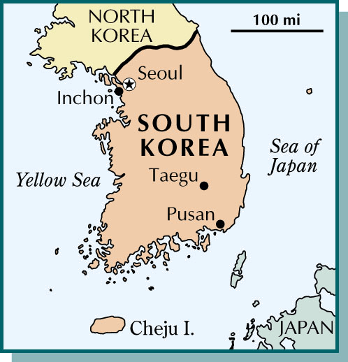 1. A country of eastern Asia at the southern end of the Korean peninsula. Part of the ancient country of Korea, it has been divided from North Korea since the end of the Korean War (1950-1953). Seoul is the capital and the largest city. Population, 39,951,000.韩国:亚洲东部一国家,位于朝鲜半岛的南端。它曾是朝鲜古国的一部分,朝鲜战争(1950-1953年)结束后,从朝鲜分离出来。汉城为其首都和最大城市。人口39,951,000