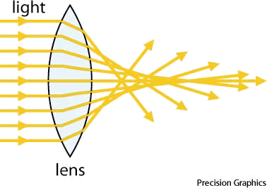 spherical aberrationn.(名词) spherical aberrationParallel light rays passing through a lens with a spherical surface focus at different points depending on whether they pass through the lens closer to the edge or closer to the center.- A blurred image that occurs when light from the margin of a lens or mirror with a spherical surface comes to a shorter focus than light from the central portion.球面像差:由于透镜或镜子呈球形,致使边缘光线的焦点短于中心光线的焦点而产生的像差