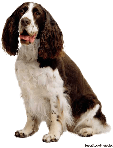 A dog of either of two breeds of spaniels, the English springer spaniel or the Welsh springer spaniel.
