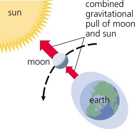 spring tiden.(名词) Spring tides occur when the sun and moon are directly in line with the earth and their gravitational pulls reinforce each other. Precision Graphics- The exceptionally high and low tides that occur at the time of the new moon or the full moon when the sun, moon, and earth are approximately aligned.朔望潮:新月和满月间当太阳、月亮、地球几乎成一线时发生的特别高低起伏的大潮